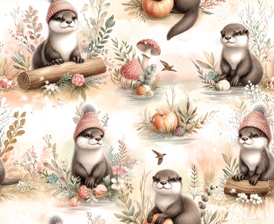 Otter Fabric by the Yard. Cute animal fabric. Wood land. fall fabric